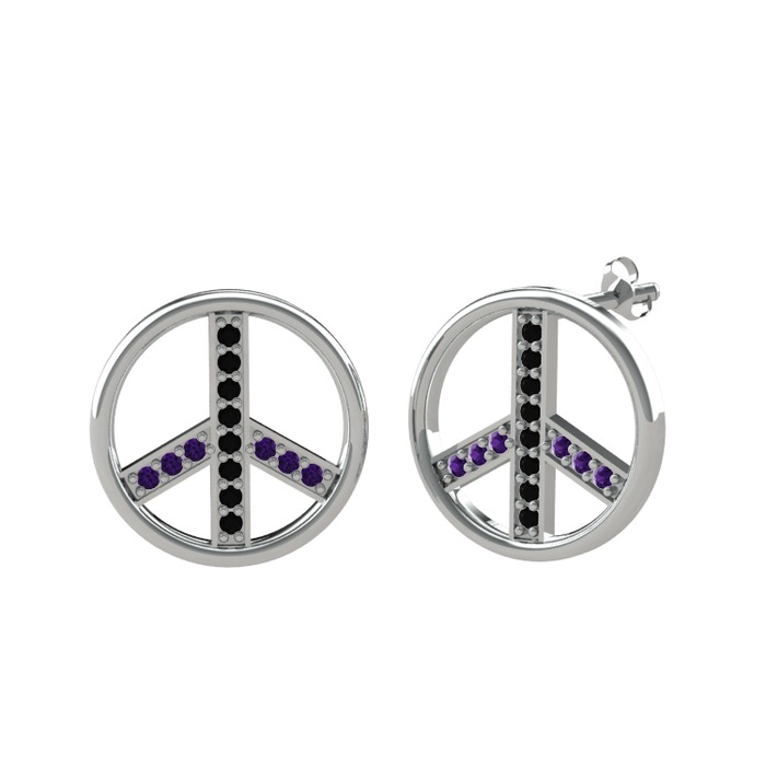 Siyah zirkon ve ametist 8 ayar beyaz altın küpe