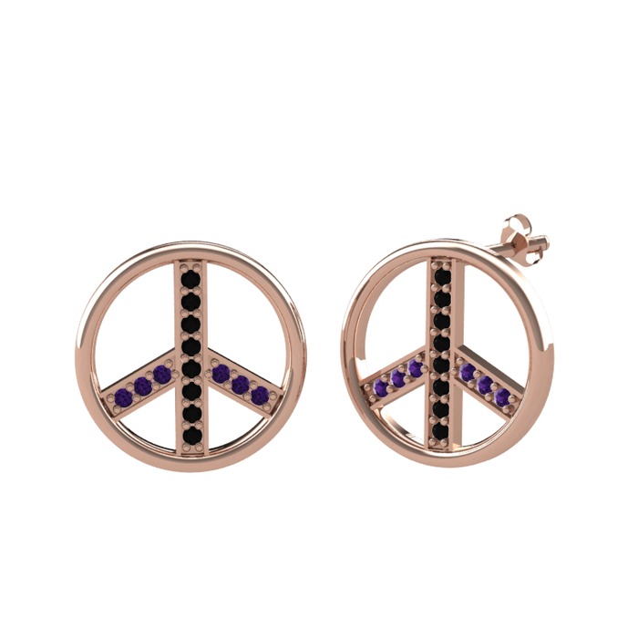 Siyah zirkon ve ametist 8 ayar rose altın küpe