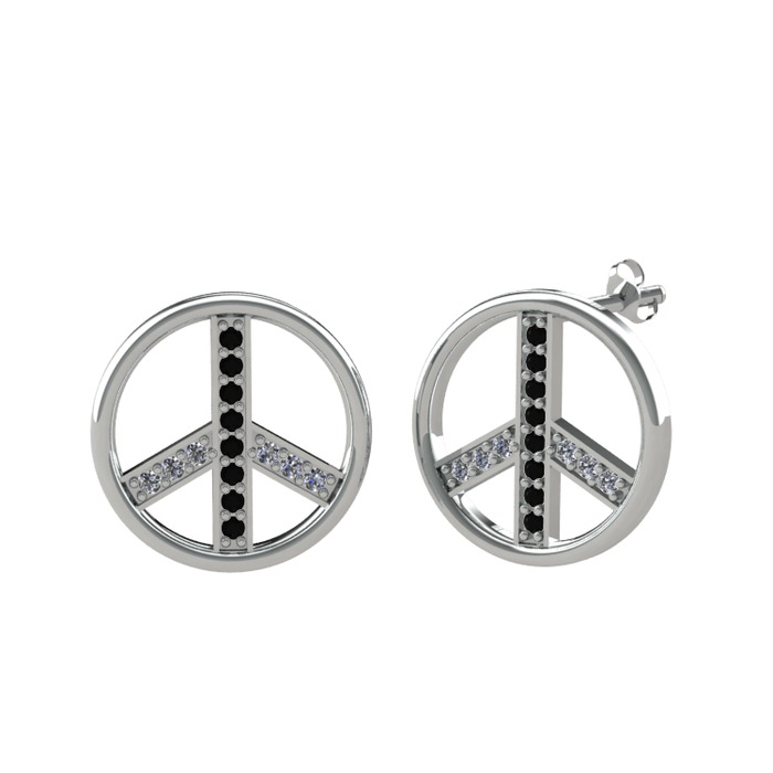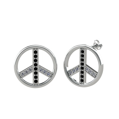 Siyah zirkon ve pırlanta 14 ayar beyaz altın küpe (0.108 karat)