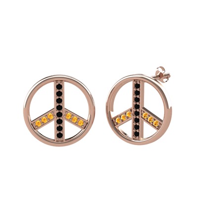 Siyah zirkon ve sitrin 14 ayar rose altın küpe