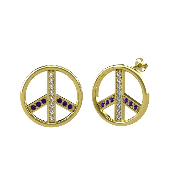 Swarovski ve ametist 18 ayar altın küpe
