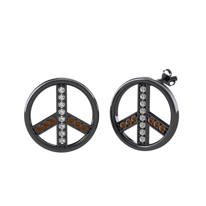 Swarovski ve dumanlı kuvars 925 ayar siyah rodyum kaplama gümüş küpe
