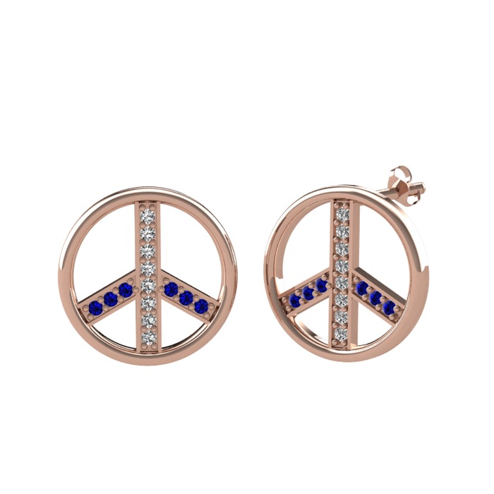 Swarovski ve lab safir 8 ayar rose altın küpe