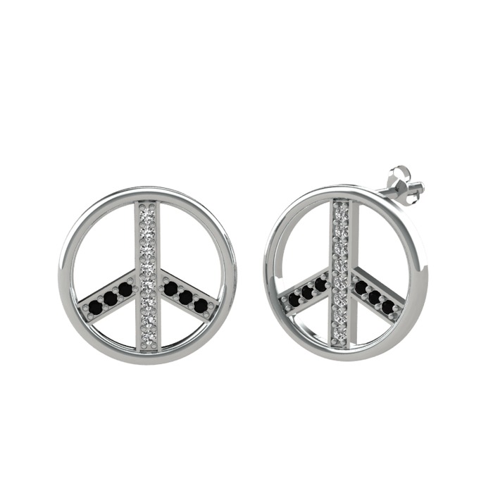Swarovski ve siyah zirkon 18 ayar beyaz altın küpe