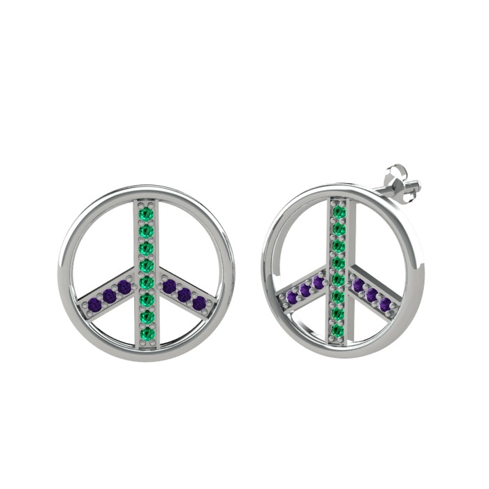 Yeşil kuvars ve ametist 925 ayar gümüş küpe