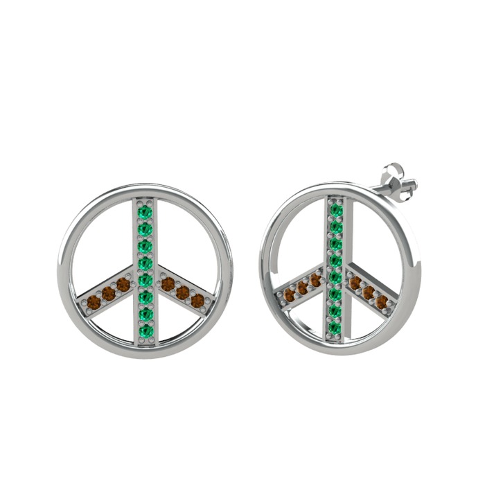 Yeşil kuvars ve dumanlı kuvars 14 ayar beyaz altın küpe
