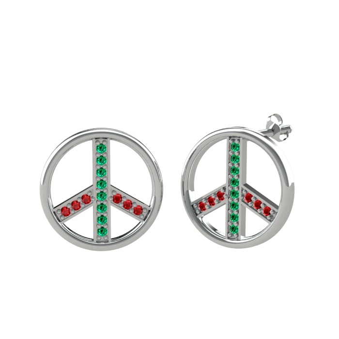 Yeşil kuvars ve garnet 18 ayar beyaz altın küpe