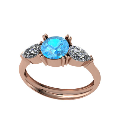 Akuamarin ve beyaz zirkon 18 ayar rose altın yüzük