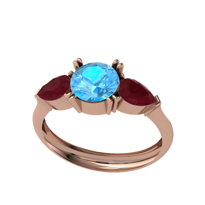 Akuamarin ve kök yakut 8 ayar rose altın yüzük