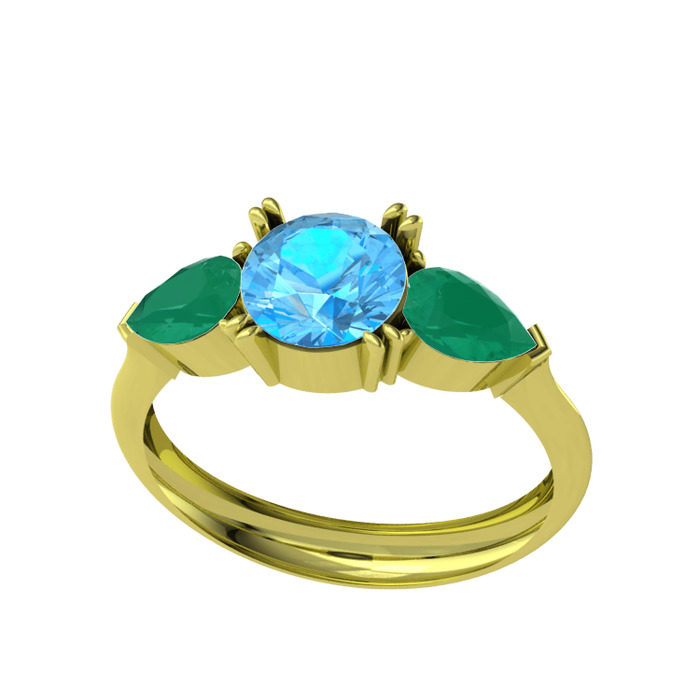 Akuamarin ve kök zümrüt 14 ayar altın yüzük