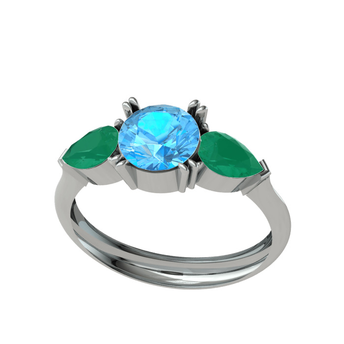 Akuamarin ve kök zümrüt 14 ayar beyaz altın yüzük