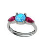 Akuamarin ve rodolit garnet 14 ayar beyaz altın yüzük