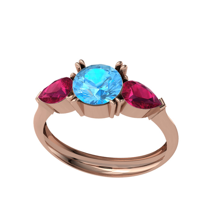 Akuamarin ve rodolit garnet 14 ayar rose altın yüzük