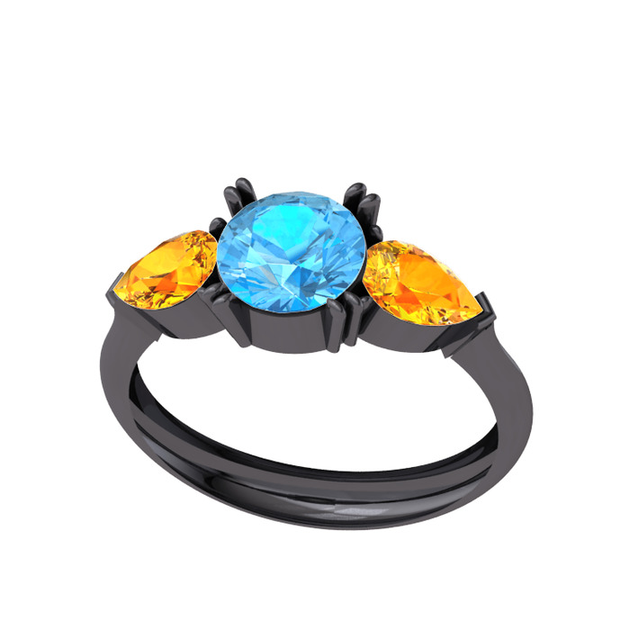 Akuamarin ve sitrin 925 ayar siyah rodyum kaplama gümüş yüzük