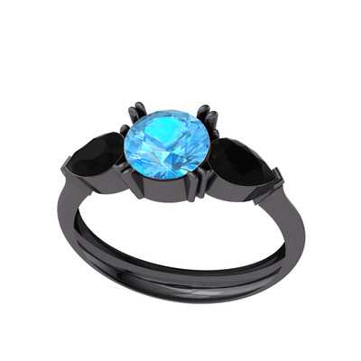 Akuamarin ve siyah zirkon 925 ayar siyah rodyum kaplama gümüş yüzük