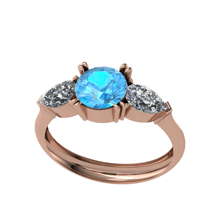 Akuamarin ve swarovski 18 ayar rose altın yüzük