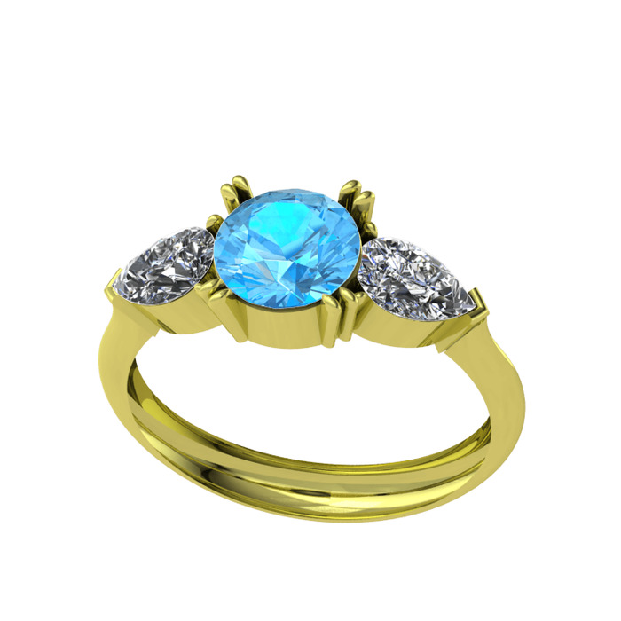 Akuamarin ve swarovski 925 ayar altın kaplama gümüş yüzük