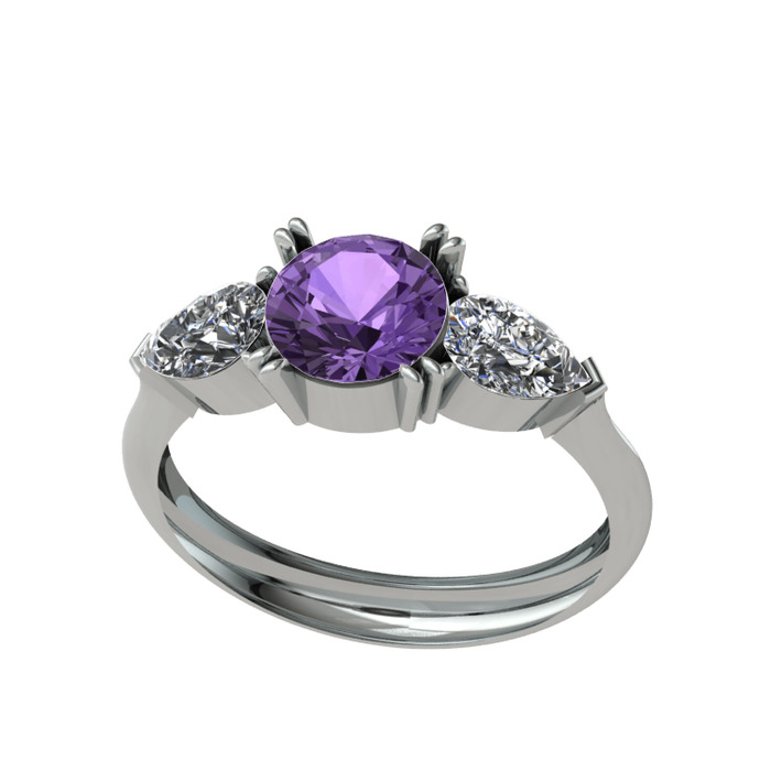Ametist ve beyaz zirkon 14 ayar beyaz altın yüzük