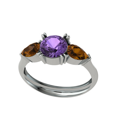 Ametist ve dumanlı kuvars 14 ayar beyaz altın yüzük