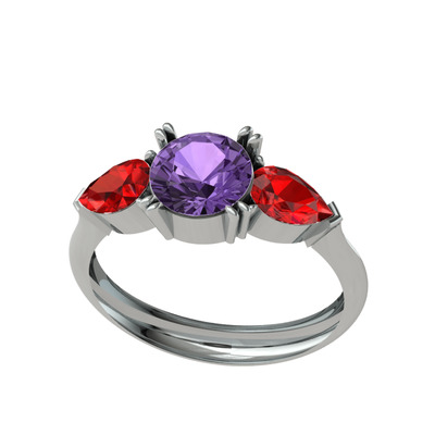 Ametist ve garnet 18 ayar beyaz altın yüzük