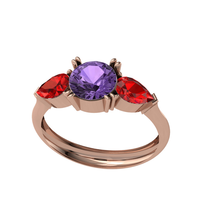 Ametist ve garnet 8 ayar rose altın yüzük