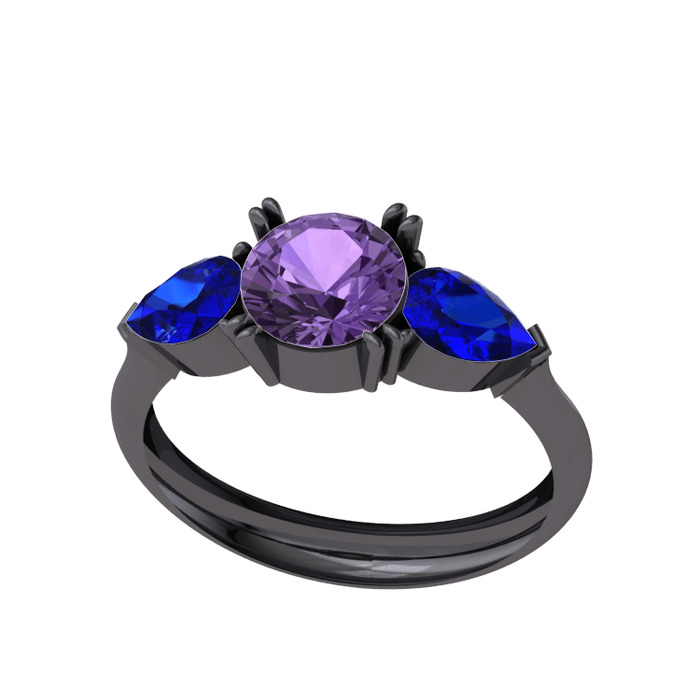 Ametist ve lab safir 925 ayar siyah rodyum kaplama gümüş yüzük