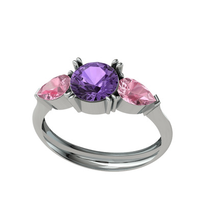 Ametist ve pembe kuvars 8 ayar beyaz altın yüzük