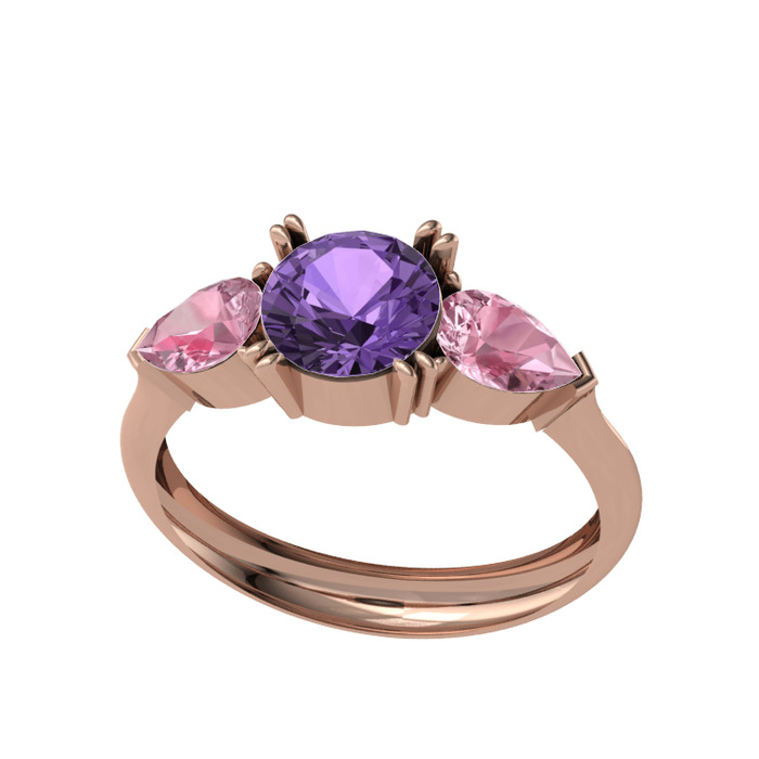 Ametist ve pembe kuvars 8 ayar rose altın yüzük