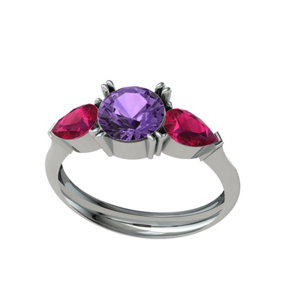 Ametist ve rodolit garnet 8 ayar beyaz altın yüzük