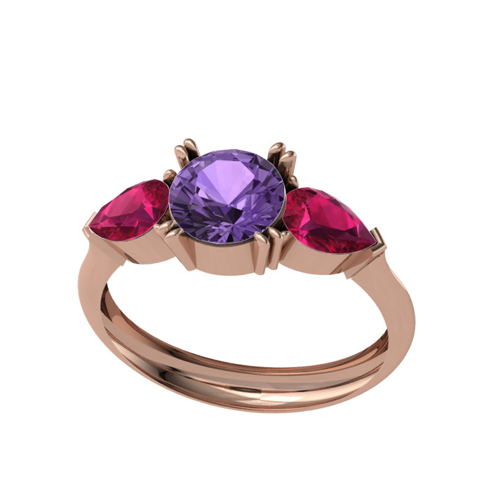 Ametist ve rodolit garnet 8 ayar rose altın yüzük