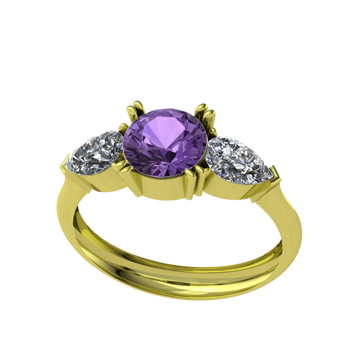 Ametist ve swarovski 925 ayar altın kaplama gümüş yüzük