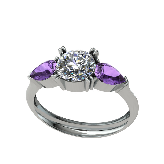 Beyaz zirkon ve ametist 18 ayar beyaz altın yüzük