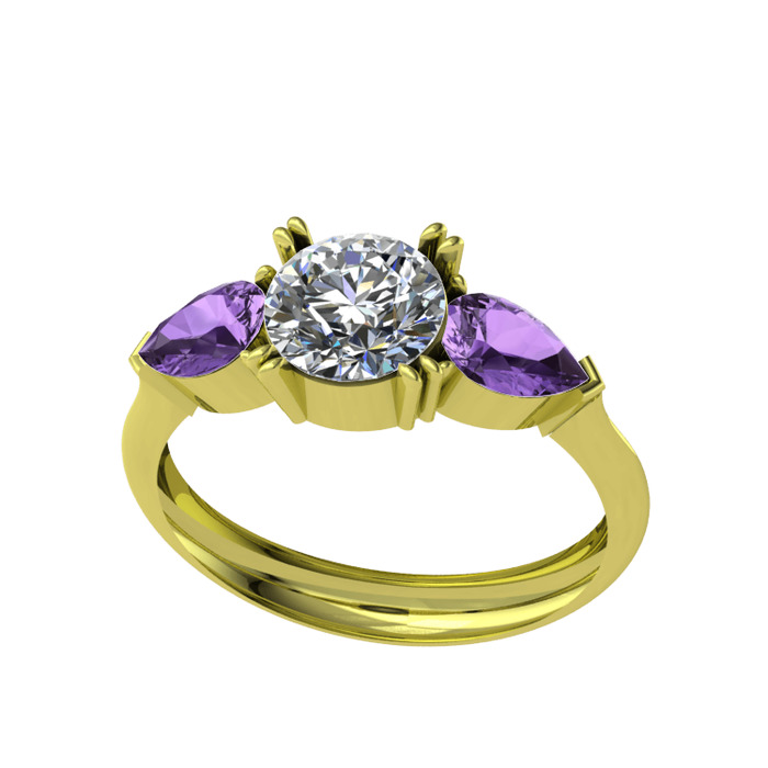 Beyaz zirkon ve ametist 8 ayar altın yüzük