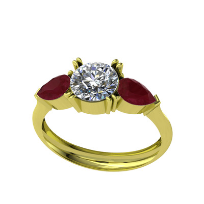 Beyaz zirkon ve kök yakut 8 ayar altın yüzük