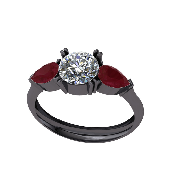 Beyaz zirkon ve kök yakut 925 ayar siyah rodyum kaplama gümüş yüzük