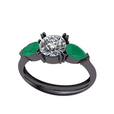 Beyaz zirkon ve kök zümrüt 925 ayar siyah rodyum kaplama gümüş yüzük
