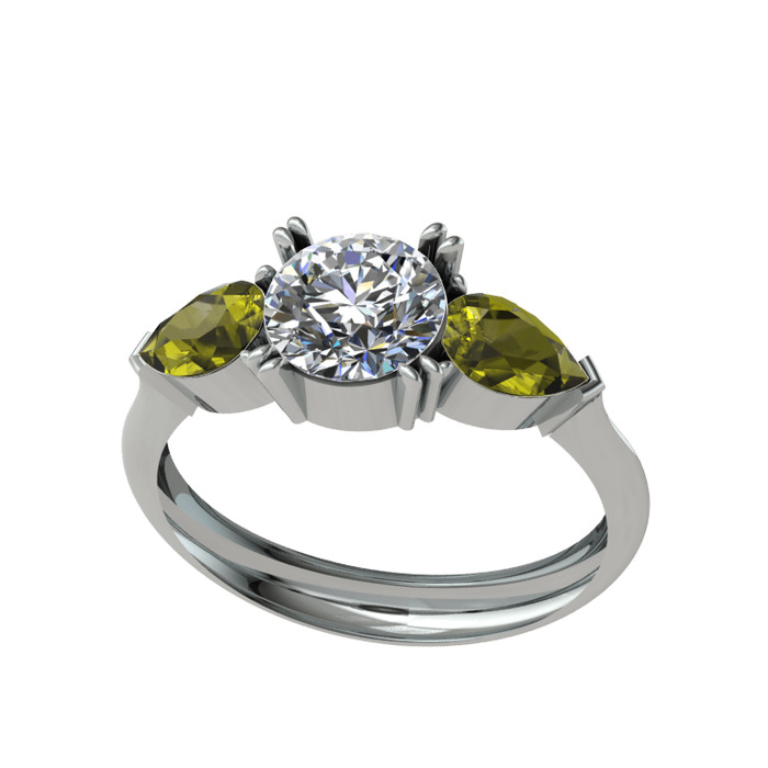 Beyaz zirkon ve peridot 925 ayar gümüş yüzük