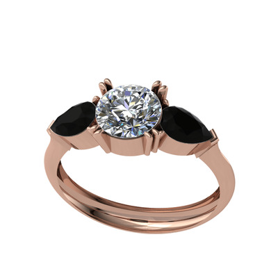Beyaz zirkon ve siyah zirkon 8 ayar rose altın yüzük