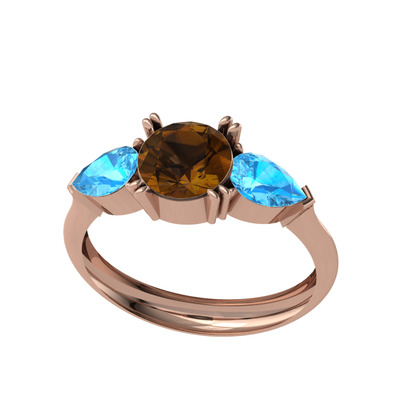 Dumanlı kuvars ve akuamarin 8 ayar rose altın yüzük