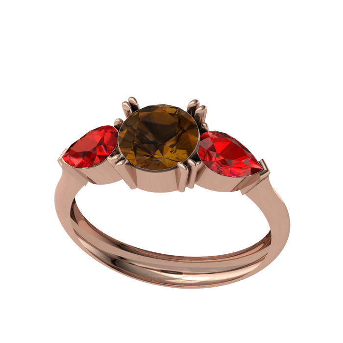 Dumanlı kuvars ve garnet 8 ayar rose altın yüzük