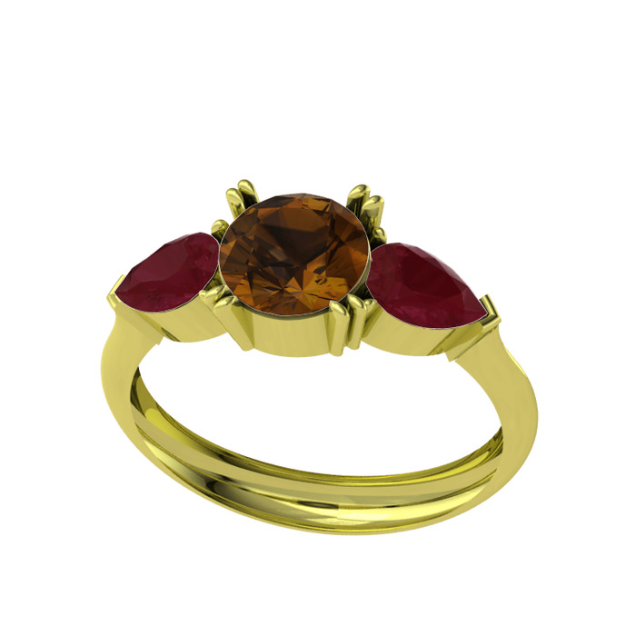 Dumanlı kuvars ve kök yakut 8 ayar altın yüzük