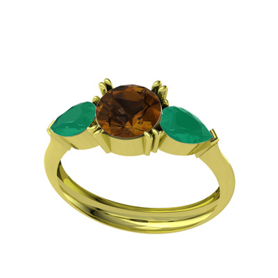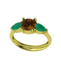 Dumanlı kuvars ve kök zümrüt 8 ayar altın yüzük