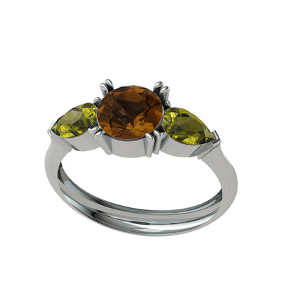 Dumanlı kuvars ve peridot 8 ayar beyaz altın yüzük