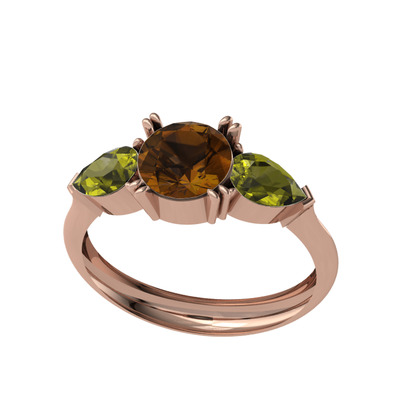 Dumanlı kuvars ve peridot 8 ayar rose altın yüzük