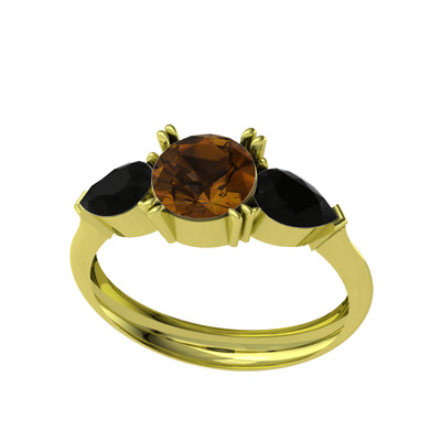 Dumanlı kuvars ve siyah zirkon 18 ayar altın yüzük