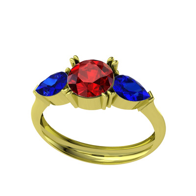 Garnet ve lab safir 8 ayar altın yüzük