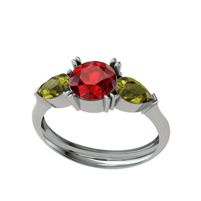 Garnet ve peridot 14 ayar beyaz altın yüzük