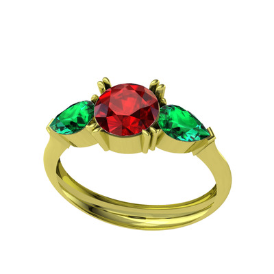 Garnet ve yeşil kuvars 14 ayar altın yüzük