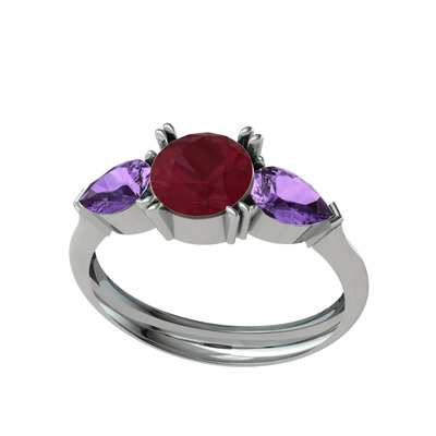 Kök yakut ve ametist 925 ayar gümüş yüzük
