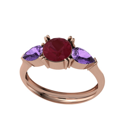 Kök yakut ve ametist 925 ayar rose altın kaplama gümüş yüzük